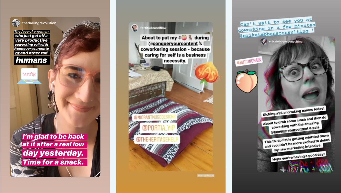 And also if people who are signed up are hanging out on Instagram and they had forgotten that coworking was coming up, that was a nice reminder for them.