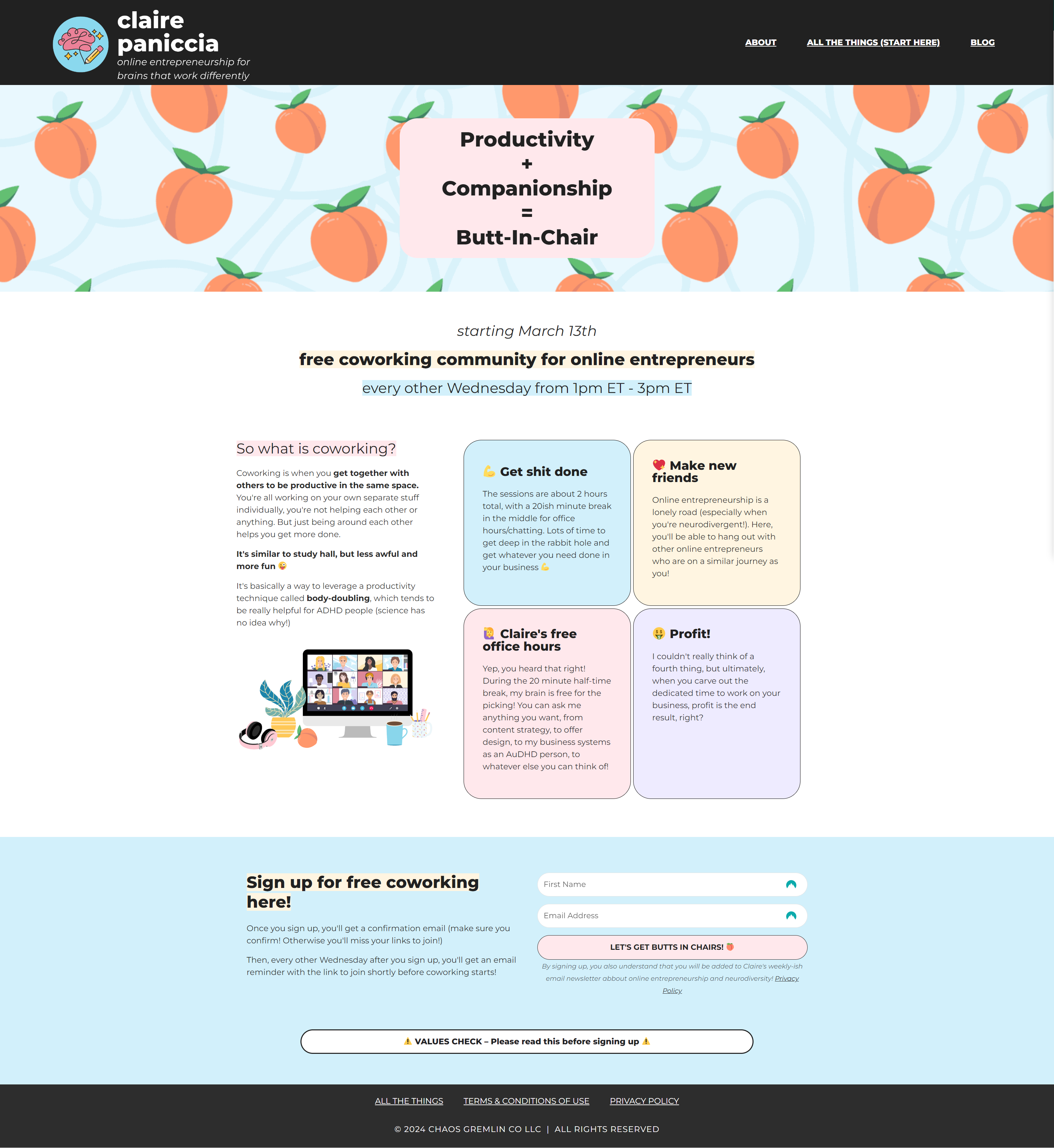 A landing page is definitely not required to get started, but I would recommend it. It's very handy to have one place to send people with all the details, an explanation of what coworking is and how it will work, and an embedded opt-in form.